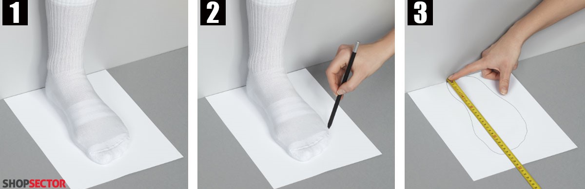 Măsoară lungimea piciorului tău desculț. Așază o foaie de hârtie albă pe pământ și conturează cu atenție forma piciorului tău. Fă acest lucru pentru ambele picioare. Apoi, măsoară conturul în linie dreaptă de la capătul călcâiului în partea centrală până la capătul celui mai lung deget. Este recomandabil să faci acest lucru după-amiaza târziu sau seara, deoarece dimineața piciorul este odihnit. Ia în considerare măsurătorile de la piciorul mai lung, deoarece picioarele stâng și drept au întotdeauna o diferență. La dimensiunea pe care ai obținut-o, adaugă jumătate sau un centimetru pentru un confort maxim al piciorului tău. De exemplu, dacă ai măsurat piciorul mai lung de 28 cm, atunci ar trebui să alegi de la noi o mărime cu o lungime a tălpii interioare de 28,5 cm sau chiar 29 cm.