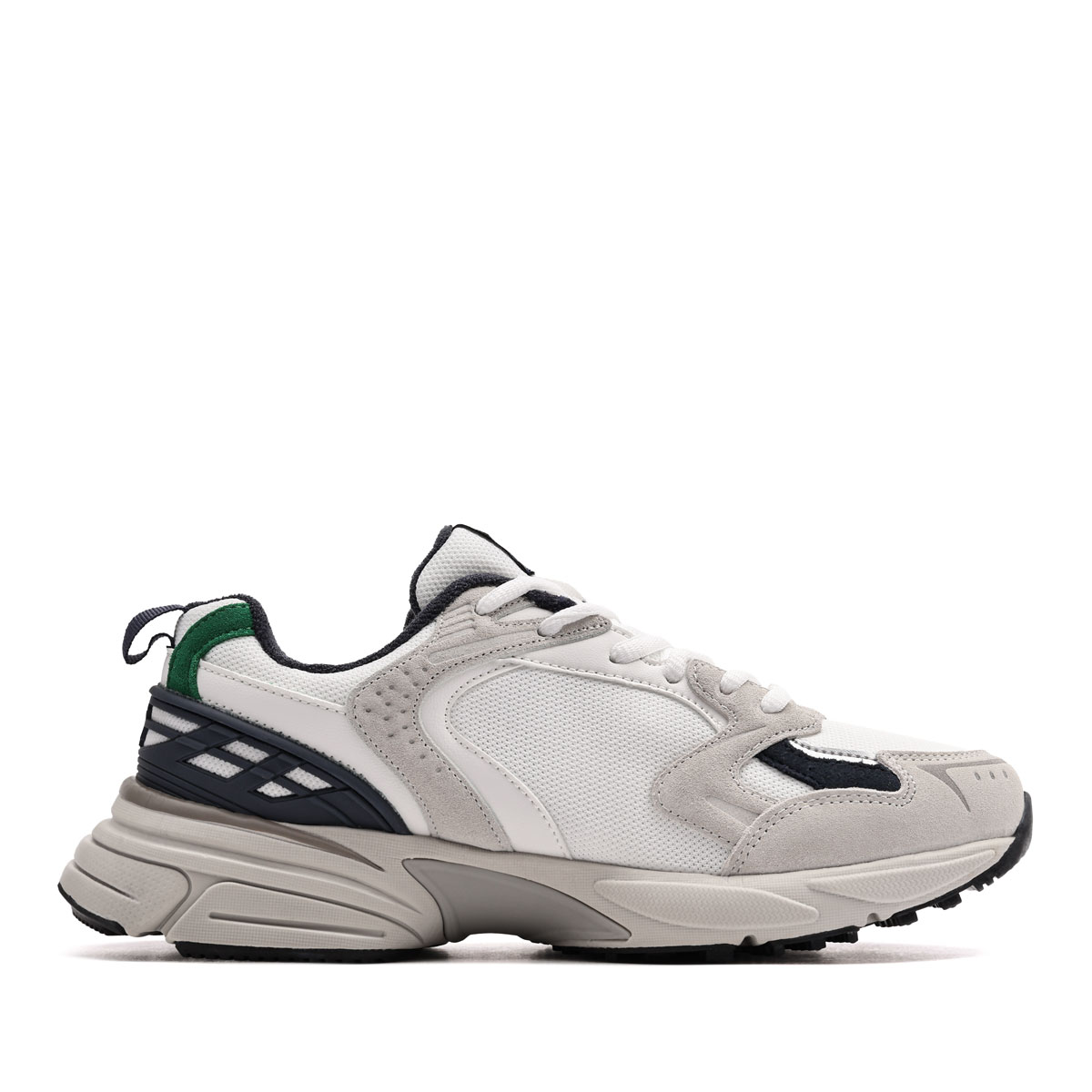 - partea superioară din plasă multistratificată care asigură o bună ventilație și elemente din piele (căprioară ) în zonele cheie ale piciorului pentru rezistență și durabilitate;