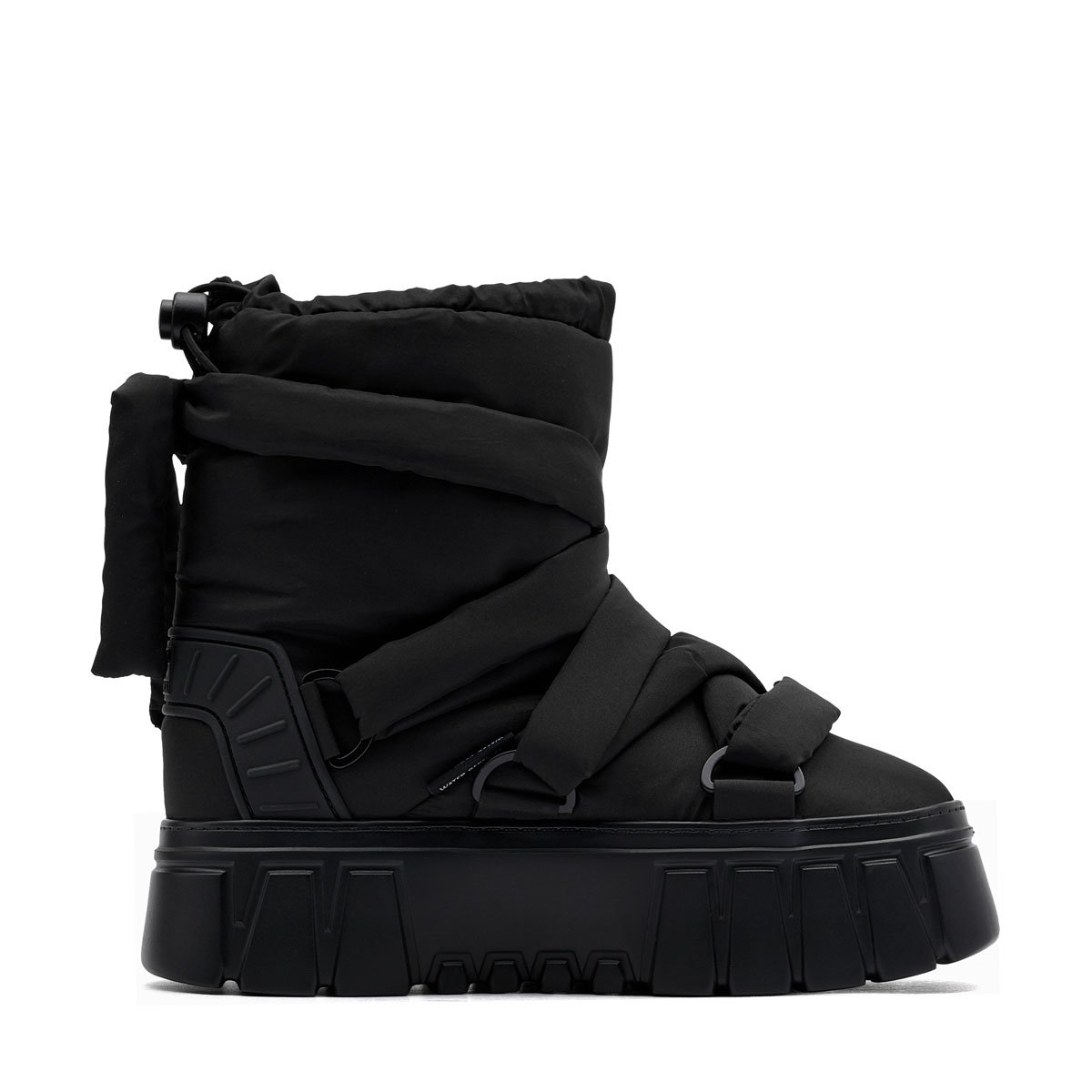 Un sistem special de prindere îmbunătățește potrivirea pantofului la picior și fixează partea din spate. Interiorul are o căptușeală moale care menține căldura și izolează de frig.