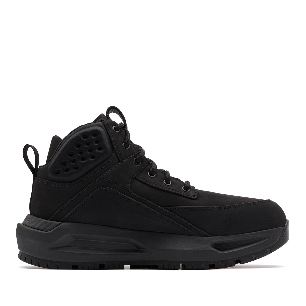 Gulerul înalt este întărit cu material moale pentru a preveni pătrunderea aerului rece în interiorul cizmei. Sistemul de șireturi permite o potrivire personalizată și confortabilă.
